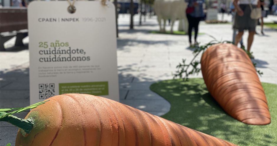 Los alimentos ecológicos gigantes visitan esta primavera las bibliotecas de San Francisco del Casco Antiguo de Pamplona, la Biblioteca Pública de Cintruénigo y la Biblioteca Pública de Tafalla del próximo 22 de abril al 21 de junio; una muestra que acoge también un curso de tres sesiones de iniciación al cultivo ecológico de hortalizas, sumando así a la vistosidad de la muestra la posibilidad de aprender el manejo de una huerta ecológica.