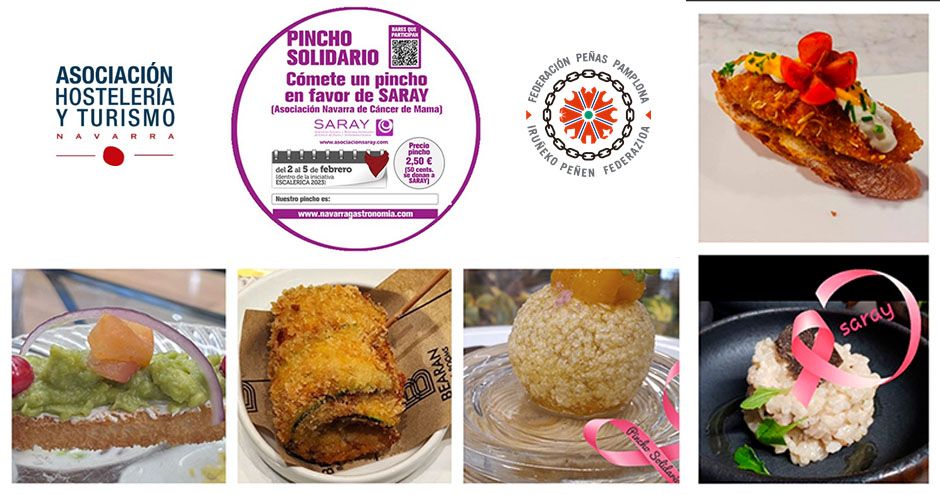 Este fin de semana, del 3 al 5 de mayo, y el siguiente, del 10 al 12 de mayo, la Asociación de Empresarios de Hostelería y Turismo de Navarra colabora con la Asociación Española Contra el Cáncer en una iniciativa solidaria: el «Pincho Solidario».