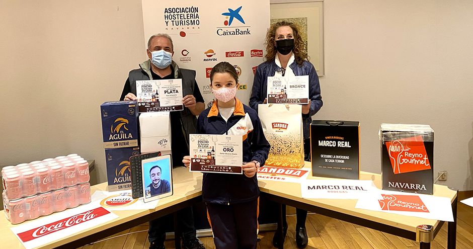 Hoy se ha celebrado la entrega de galardones en las instalaciones de la Asociación de Hostelería y Turismo de Navarra, y los premiados han recibido, además del diploma, tres grandes lotes de productos obsequio de los colaboradores de la Semana del Pincho de Navarra.