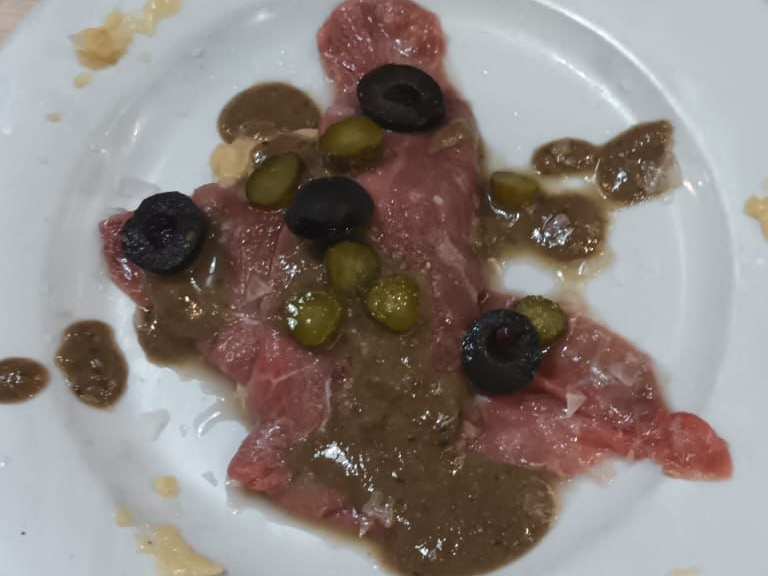 Carpaccio de ternera con crema de membrillo y vinagreta