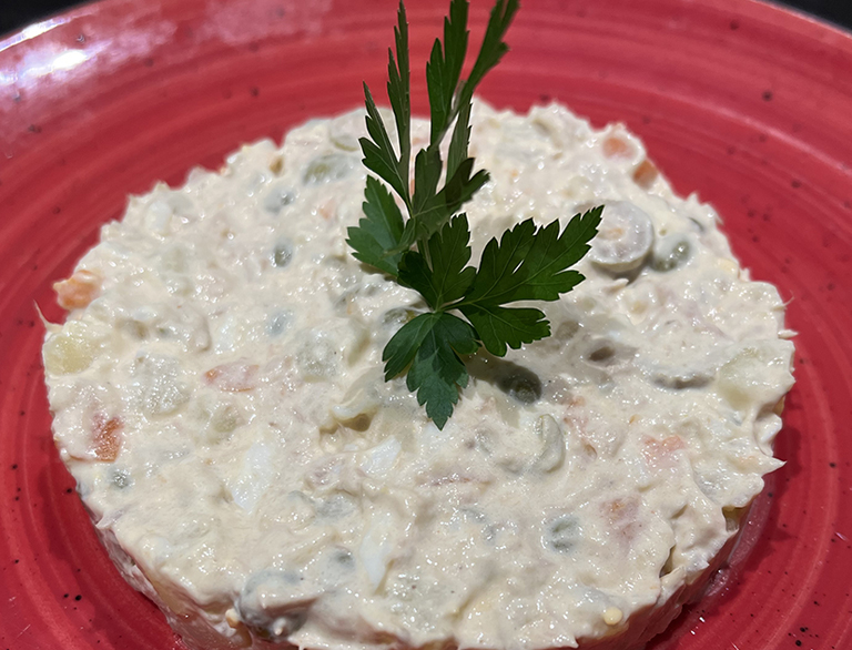 Pincho Yucatán: carne desmechada de cerdo, especiada con jugo de naranja y especias mexicanas y cebolla curtida.